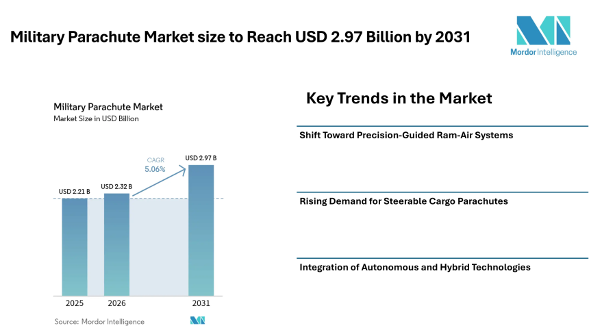 Military Parachute Market size to Reach USD 2.97 Billion by 2031 Driven by Precision Systems and Rising Defense Demand - Mordor Intelligence