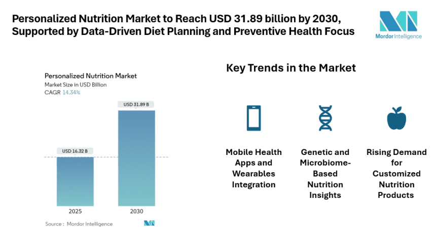 Mordor Intelligence has published a new report on personalized nutrition market, offering a comprehensive analysis of trends, growth drivers, and future projections.