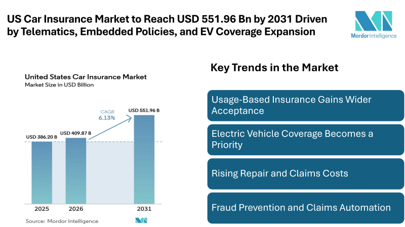 US Car Insurance Market to Reach USD 551.96 Billion by 2031 Driven by Telematics, Embedded Policies, and EV Coverage Expansion